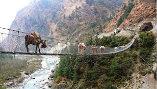 It's not just humans who use this bridge donkeys, cows and goats use it, as well. In fact, it was built specifically for animals, as a solution to the congestion caused by cattle being herded up and down Ghasa's narrow roads. Today, animals remain the biggest users of the Hanging Bridge of Ghasa, prodded along by the farmers who also use it to deliver produce to local families.